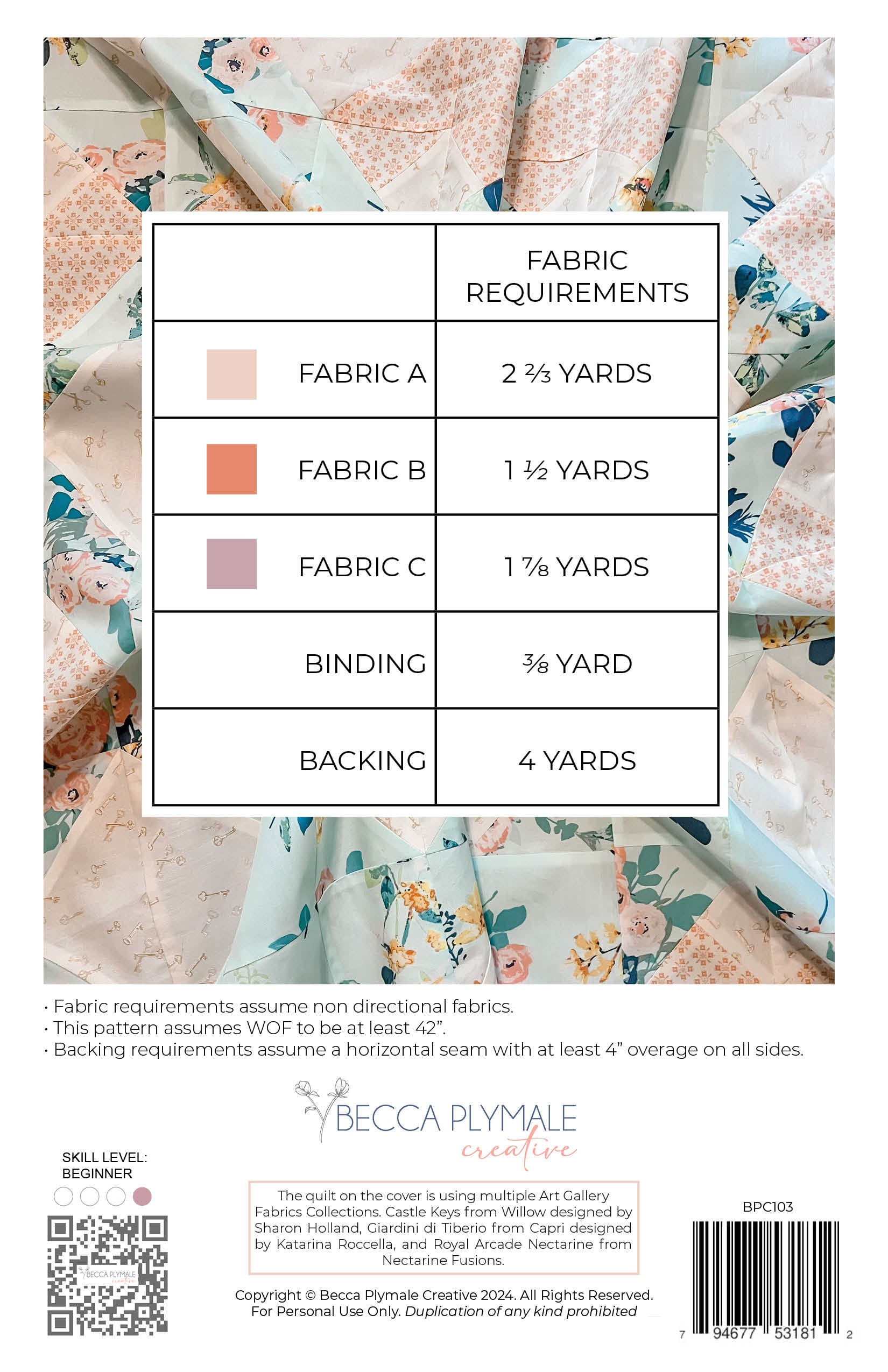 - Images from our shop and in our patterns are the property of Becca Plymale Creative. You may sell quilts that you create using Becca Plymale Creative patterns, but please credit the quilt design to Becca Plymale Creative.