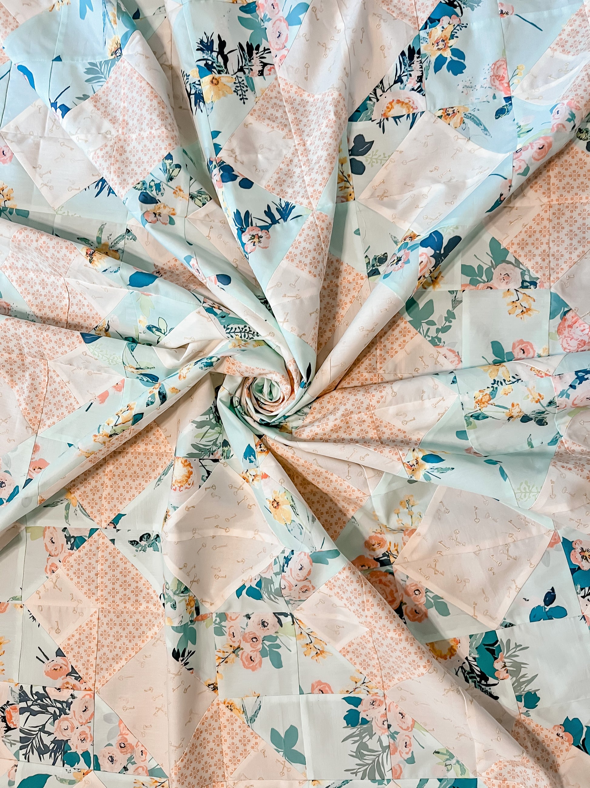 Azalea Bay is a fresh, beginner-friendly quilt pattern inspired by the serene beauty of coastal blooms. Using simple Half Square Triangle (HST) and Flying Geese techniques, this pattern creates a striking, modern design perfect for quilters of all levels. Available in a versatile Throw size (60” x 72”), this quilt brings a calm, coastal charm to any space, making it an inviting addition to your collection.