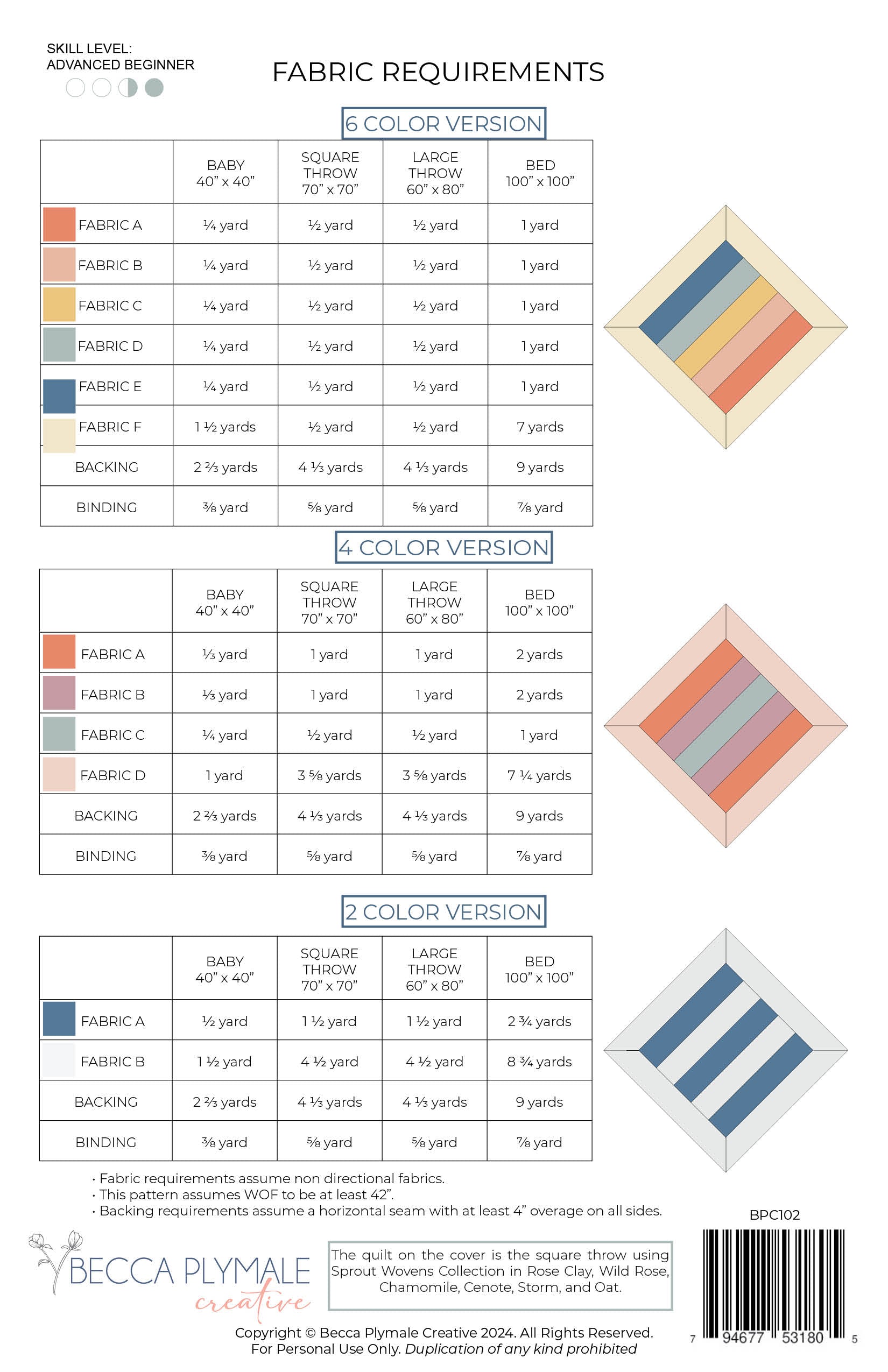 Inspired by the intricate parquet floors of a beloved home, The Woodwork Quilt brings a timeless elegance to your quilting projects. Designed as a way to cherish a piece of home, this pattern combines strip piecing with easy-to-follow Y-seam instructions, making it an accessible and satisfying sew. Ideal for advanced beginners, the pattern includes four versatile sizes: Baby (40″ x 40″), Square Throw (70″ x 70″), Large Throw (60″ x 80″), and Bed (100″ x 100″). Keep the warmth of home with you, wherever life takes you!